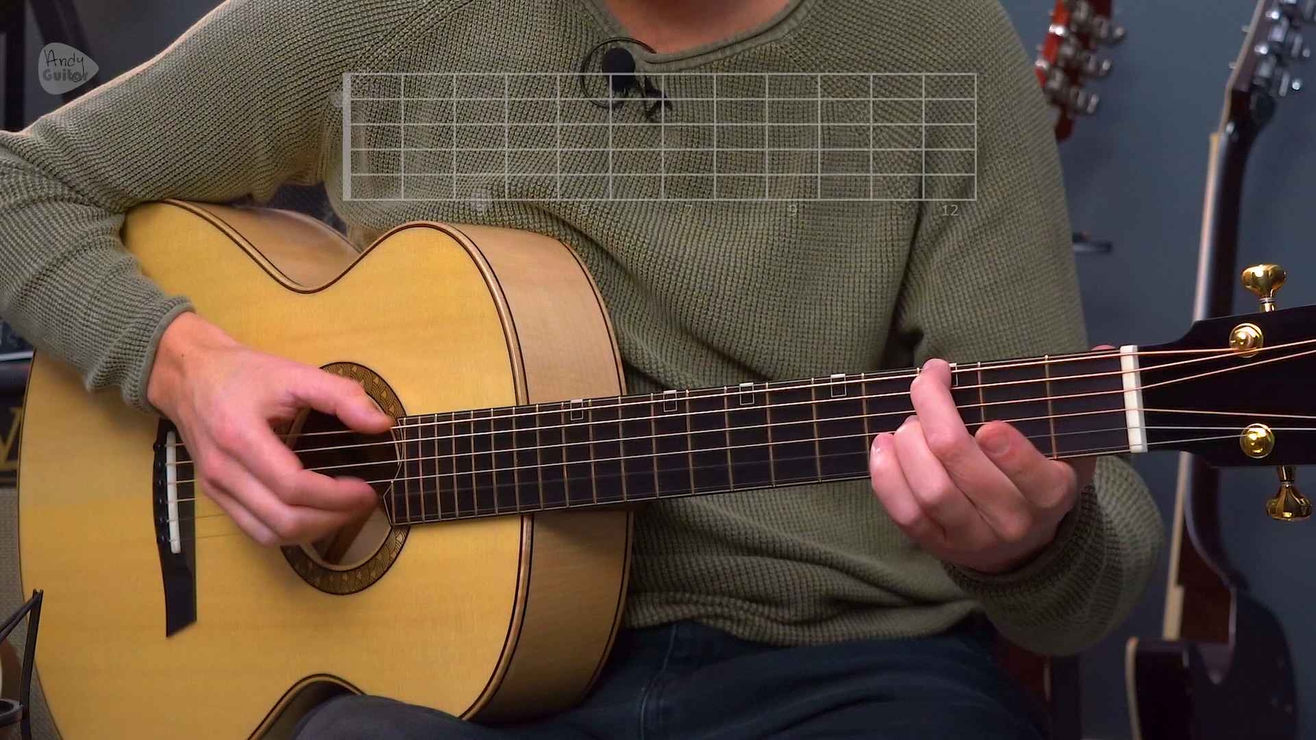 My premium fingerstyle course includes on screen graphics for each video, exercise and for all songs in a very similar fashion to this. Even better, you can loop and slow down the speed of the tab/ video to learn the parts more easily - it's the ultimate learning experience!