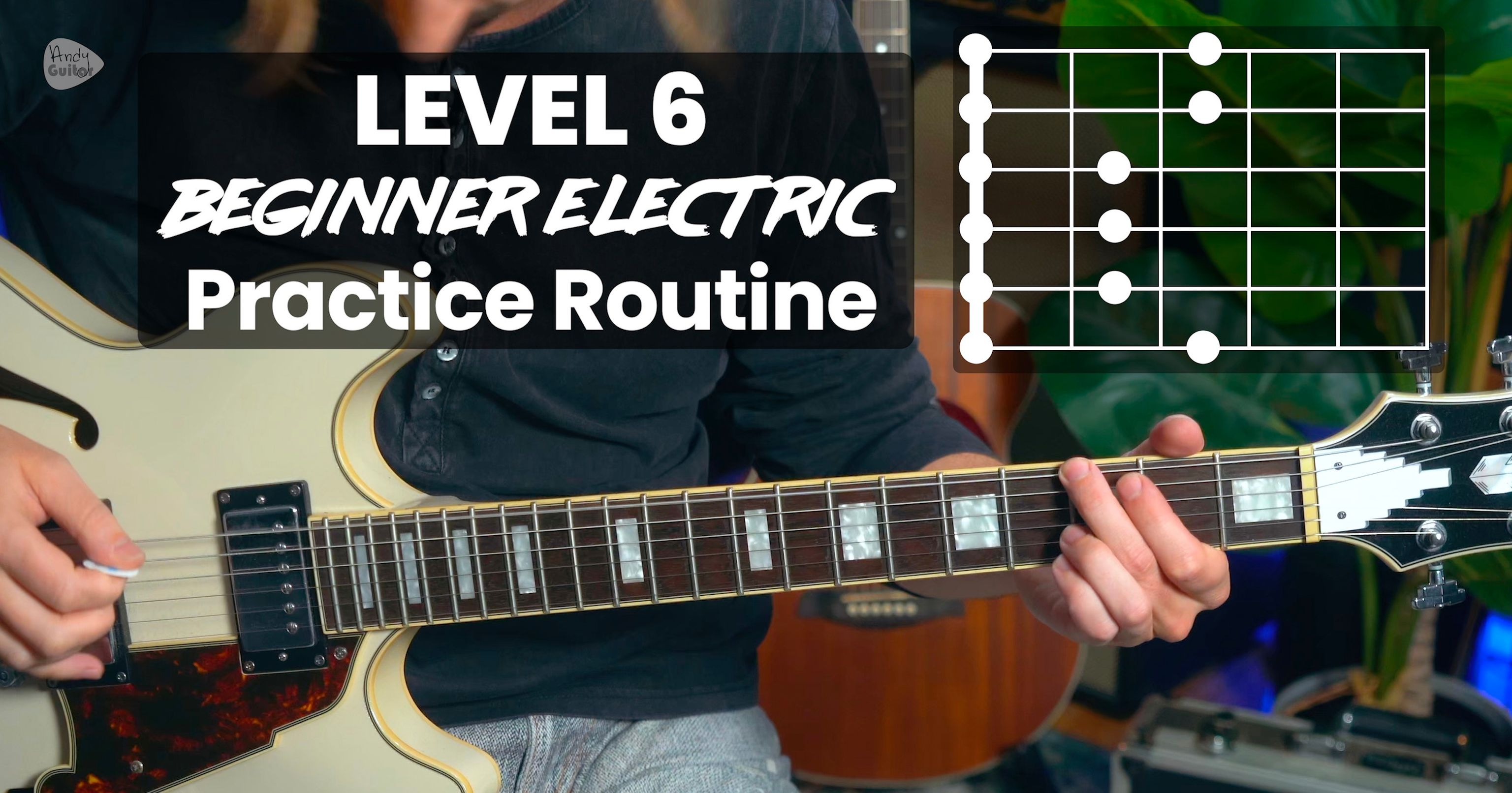Level 6 marks a significant step forward as we integrate serious scale practice and lead playing into our routine. The foundation is two-octave E minor pentatonic (visualizing the G major chord shape) and A minor pentatonic shape one, both practiced to build speed from 80-120 BPM. We're focusing on the B7 chord as the gateway to bar chords, drilling the essential G-to-B7 and E-to-B7 changes that appear in countless songs.